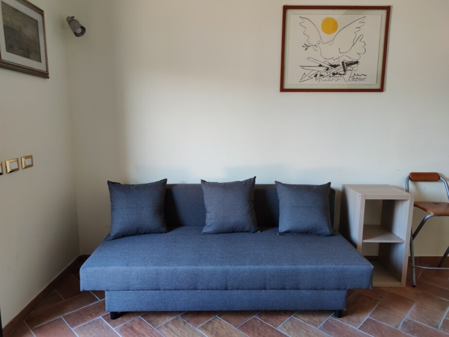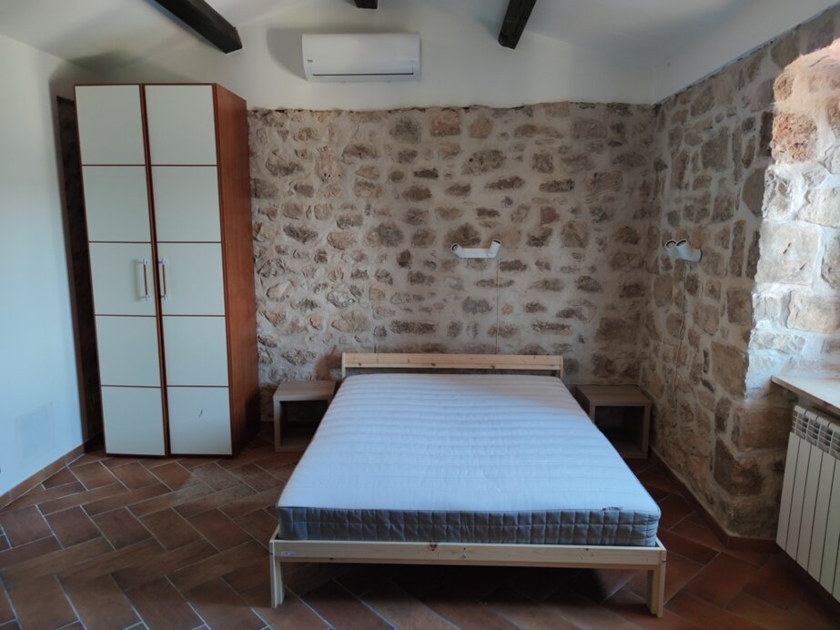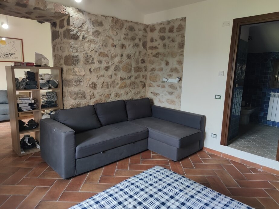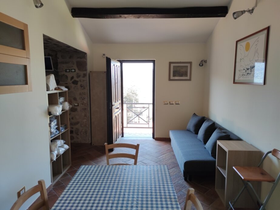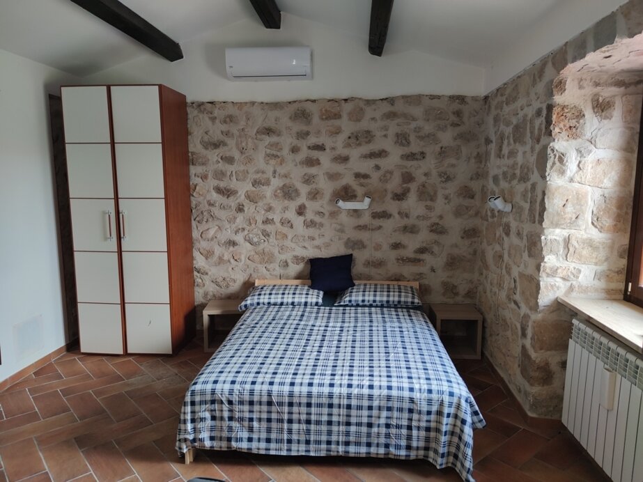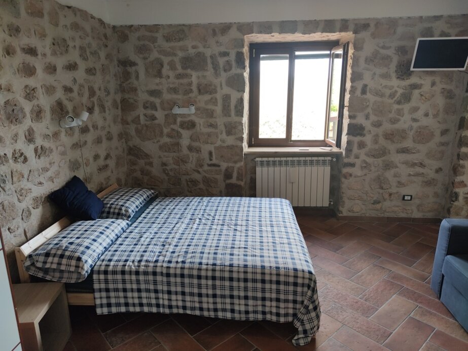 La struttura, per un totale di 50 metri quadrati, è composta da una cucina con angolo cottura, forno, frigo, tavolo per 12 persone, un’area soggiorno con divano letto a una piazza e mezzo, una camera da letto con letto matrimoniale e divano letto a due piazze, un bagno con doccia, bidet. Casale in pietra, tipica abitazione rurale ristrutturata con pavimentazione in cotto e mura in pietra, la struttura è perimetrata da muri freschi d’estate e caldi d’inverno.