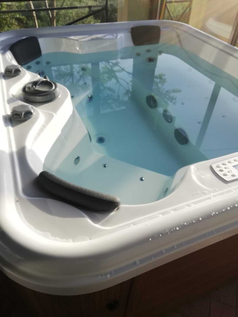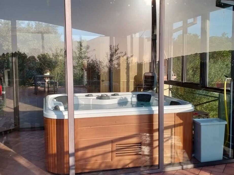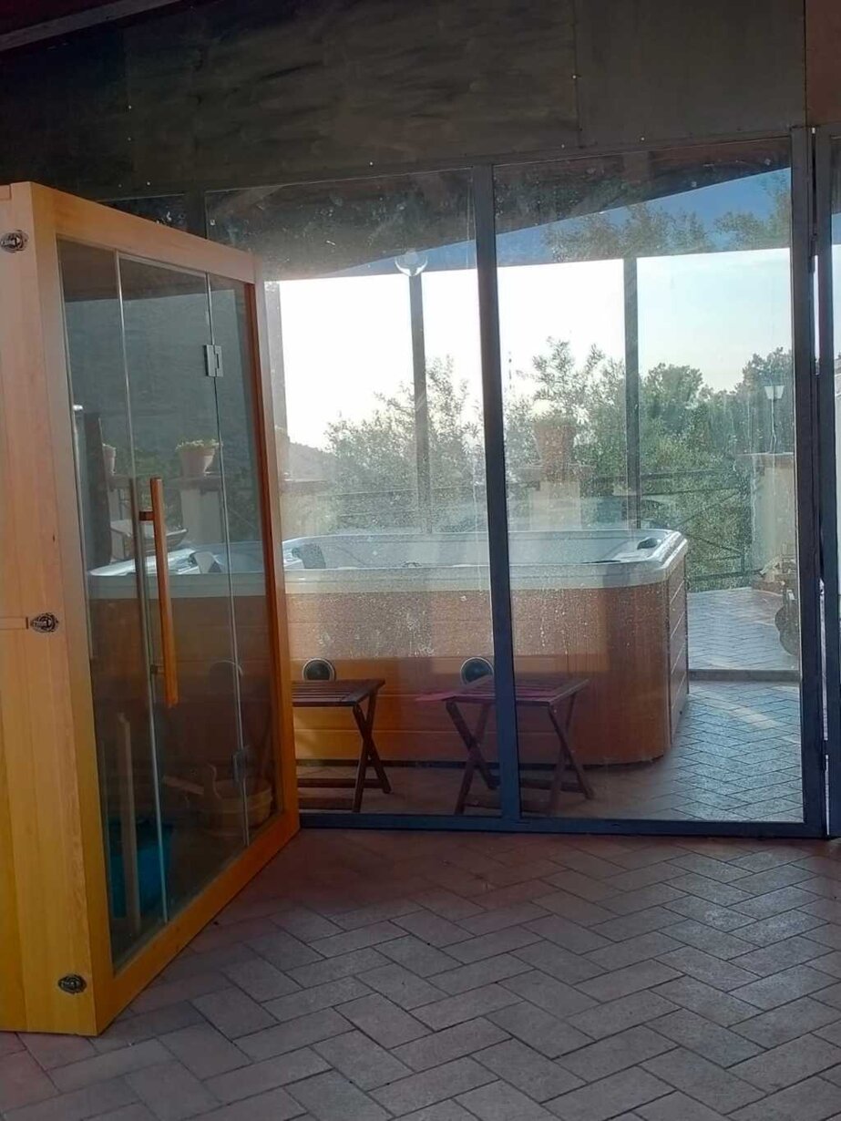 La zona mattonata circostante la struttura è dotata di un’area ristoro all’aperto, con barbecue e forno, e un’area spa, con sauna e vasca idromassaggio all’aperto.