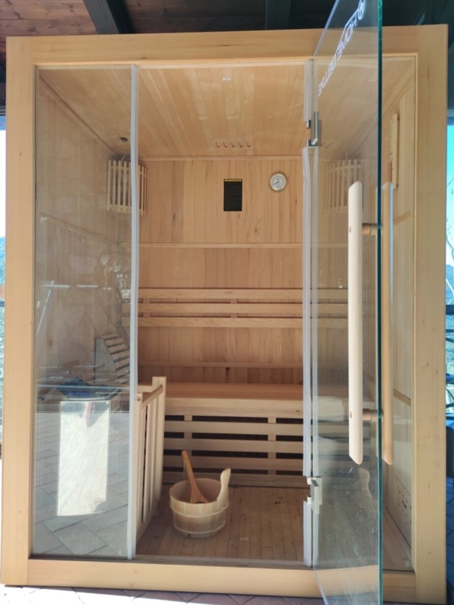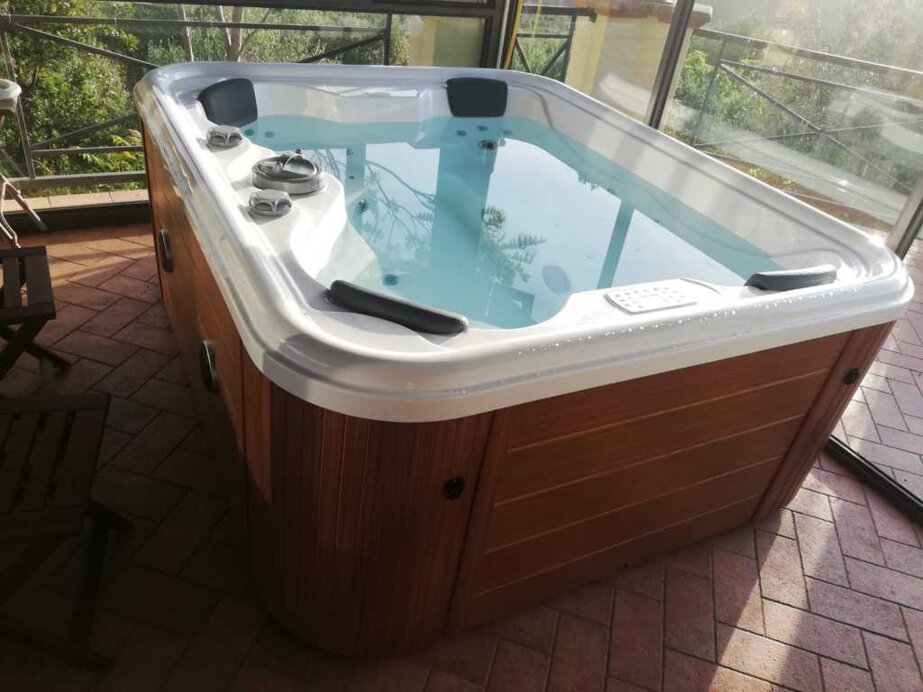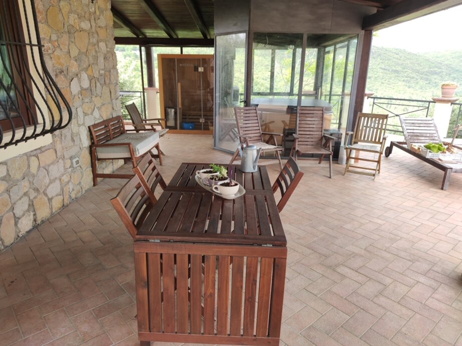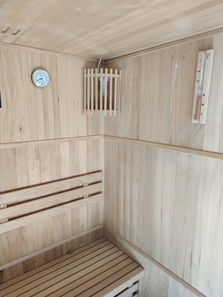 La zona mattonata circostante la struttura è dotata di un’area ristoro all’aperto, con barbecue e forno, e un’area spa, con sauna e vasca idromassaggio all’aperto.